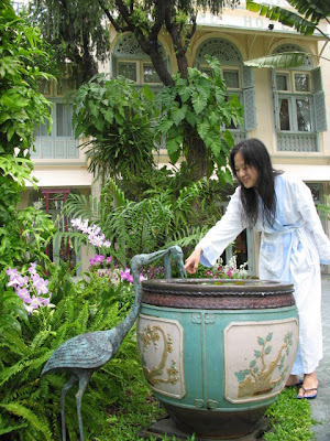 其實比曼谷文華豪華氣派的旅館多的是,喜歡它也是因歷史感。最近一次去住是在紅衫軍示威前,感覺服務品質不似以往,人心躁動吧? 但管理還是頂尖的,沒預約,一進餐廳,領班可以直接叫出我和先生的姓。他們讓顧客感到尊榮,即使經理級人物也會注意在講話時不讓自己的eye level高過我,我坐下時,他們會屈身幾乎半蹲在旁。全世界的旅館管理,看是無能出其右了。