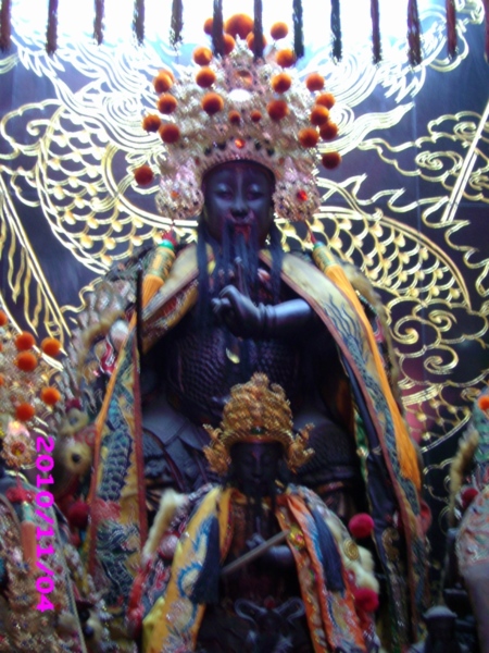 神案上有8尊小神像,兩列排開,看似八家將的架勢,有文武判、牛頭馬面、七爺八爺、鬼差,不過,八家將裡似乎沒有牛頭馬面,倒像城隍爺前列鬼差的排列方式。