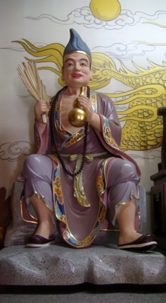 「濟公活佛」在民間的知名度頗高,其造型和一般佛、菩薩大異其趣,通常身穿僧衣,手拿一把破扇,腰繫一只葫蘆,行事瘋瘋癲癲、不修邊幅,據說是「降龍羅漢」轉世,又稱「濟癲僧」。