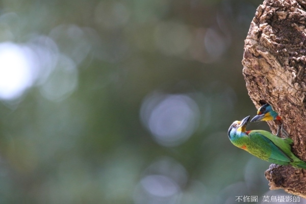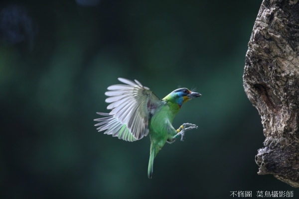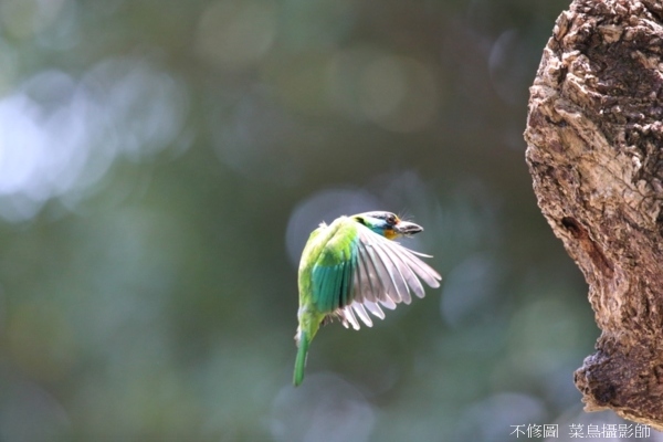 由於逆光,對於五色鳥返巢飛返的動作不易觀察,沒掌握好就只有扼腕連連;不過只要多拍幾回,慢慢就能掌握絕竅,其中滿足感只有身處其中才知奧妙。