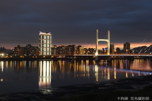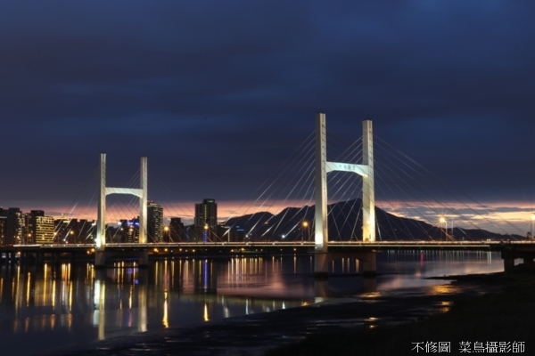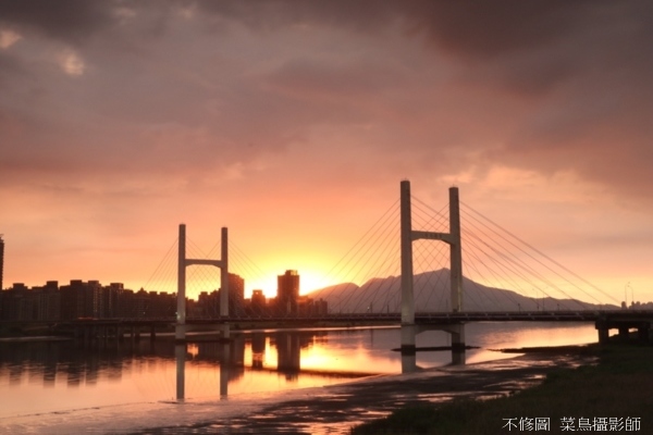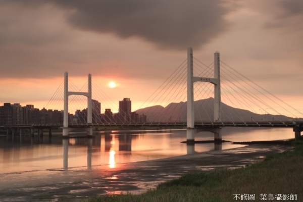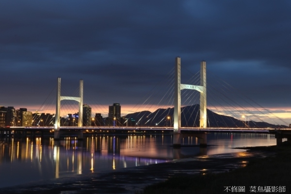 重陽橋剛好橫跨台北市與蘆洲兩地,由台北往蘆洲方向可面對橋體與夕陽,觀音山也位於眼前,是拍攝夕照、倒影與橋型的好體裁。
