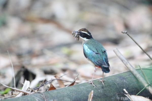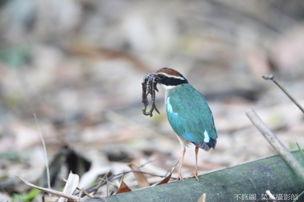 拍攝八色鳥需要等待返回巢洞之際,但八色鳥喜在竹林間刁食蚯蚓或虫類,拍攝時壓低腳架與拍攝角度,並配合背景製造景深效果,若光線昏暗需提高ISO,先求有再求品質,待光線足夠再降低ISO提高質量並加速快門拍攝,就能夠創作美好作品。