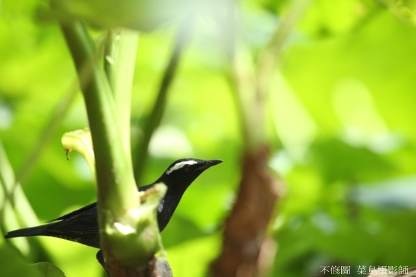 牠性警覺,稍有晃影就飛離,因此當一身黑衣掛著兩道白眉的雄鳥翩翩而來,全場立刻鴉雀無聲耐心等待。黑羽色需要機動調整亮度,加一格過亮背景光斑暴現,減一格則羽色過暗細節難現;更困難的是對焦,有時會出現迷焦不易按壓,無法掌握想要的鳥姿動態及眼神光,因此有些前輩會手動對焦或反光鏡預鎖來因應,這些困難更加彰顯白眉地鶇的難得拍攝。