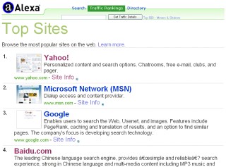 前5名分別為Yahoo、Microsoft、 Google、 Baidu、 MySpace...