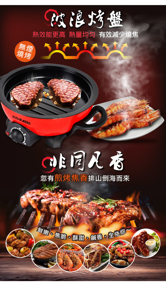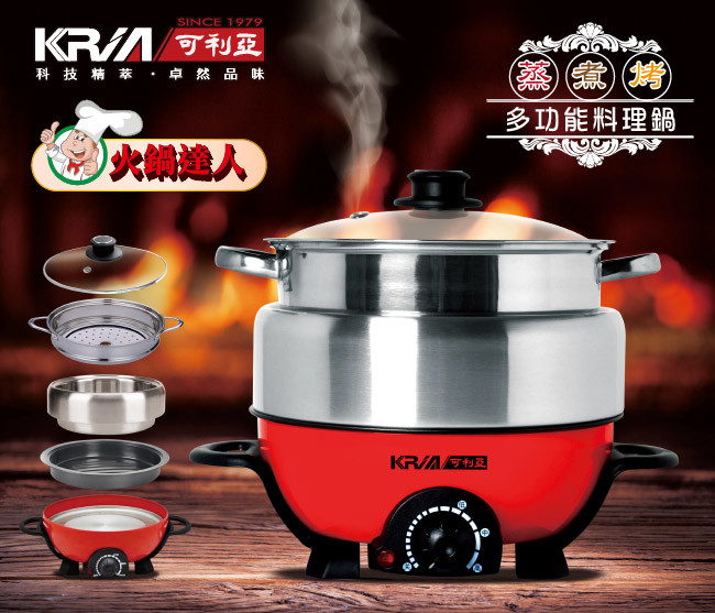 【KRIA可利亞】3L不銹鋼蒸煮烤多功能料理電火鍋/調理鍋(KR-830)