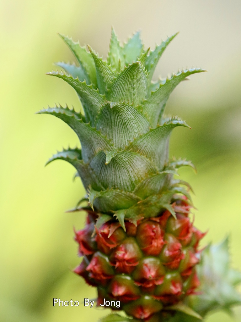 其實,鳳梨不只是農作食用的水果,鳳梨福佬語叫「旺來」,民間祈福祭拜,總不可或缺,一般庭院當作觀賞植物,也十分討喜啊!在許多專業生態報導的影片中,無論是在雨林的樹冠層,還是在荒涼的高山或沙漠,其儲水的功能和飽含汁液的根莖果實,似乎都是昆蟲、樹蛙及多種鳥類哺乳類動物棲息及飲食的來源。如今鳳梨在紡纖及醫藥上又有發明和貢獻,足見,鳳梨在自然生態及人類生活中都扮演著十分重要的角色啊!