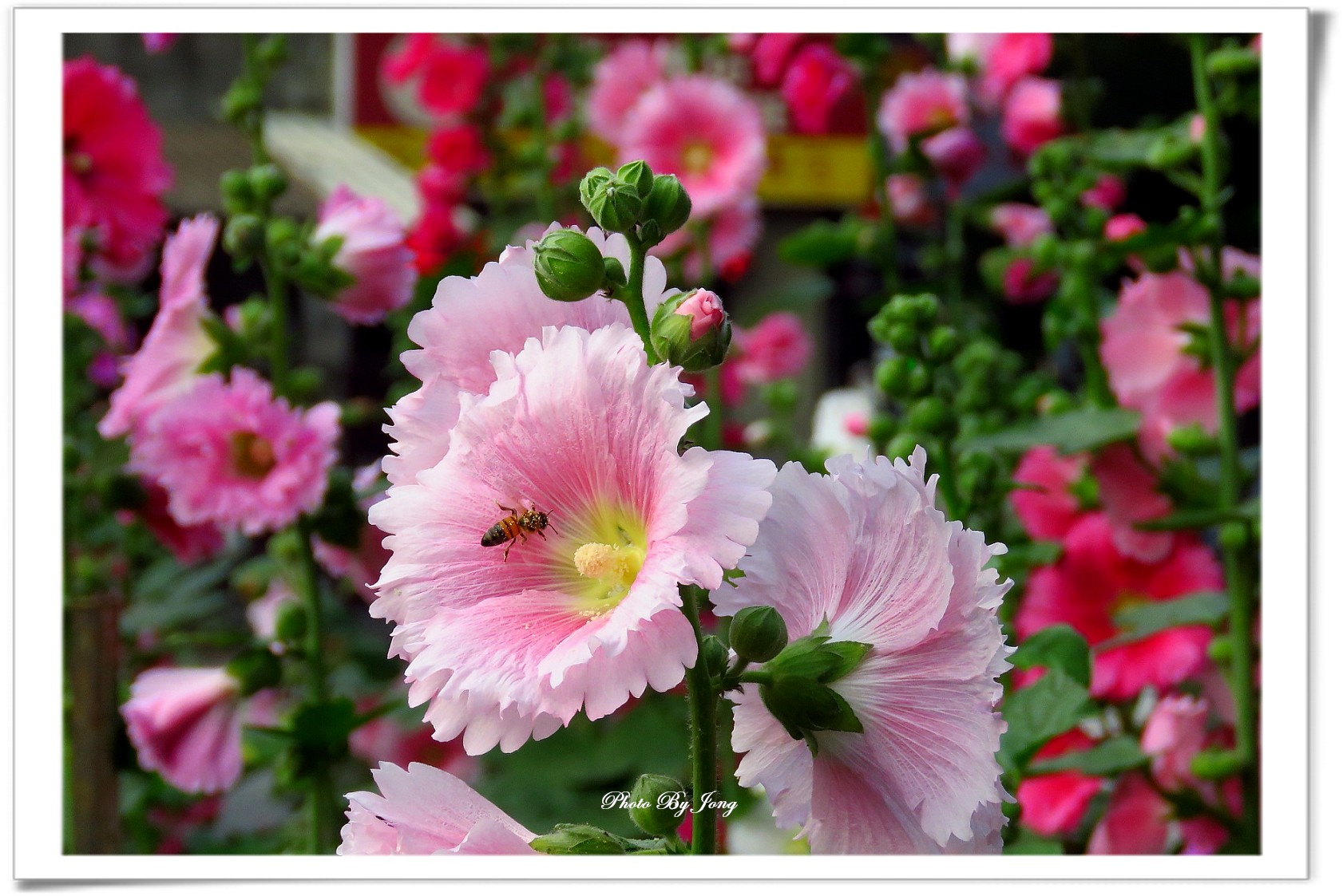 從您的視覺角度裡,見蜀葵花萬種風情,