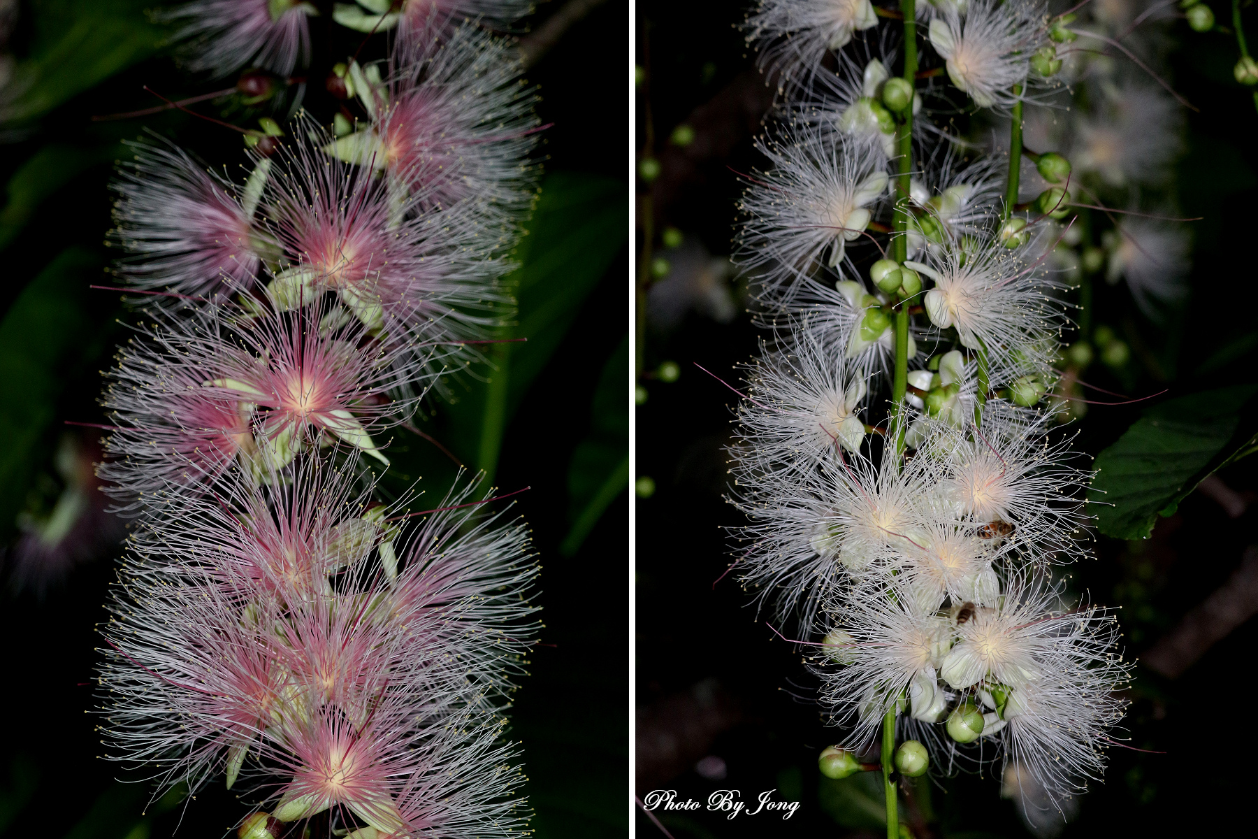幸好,家離園區不遠,且園區是開放式的,並沒有夜間關閉的限制,為了一睹穗花棋盤腳綻放的花容,完成拍攝穗花棋盤腳花顏的心願,我也就不得不趁著夜裡,帶著手電筒照明設備趕過去,總算見到了和白天不一樣的穗花棋盤腳全開的面貌。也終於在夜色中拍到了穗花棋盤腳像煙火般綻放的「寫真」啦。