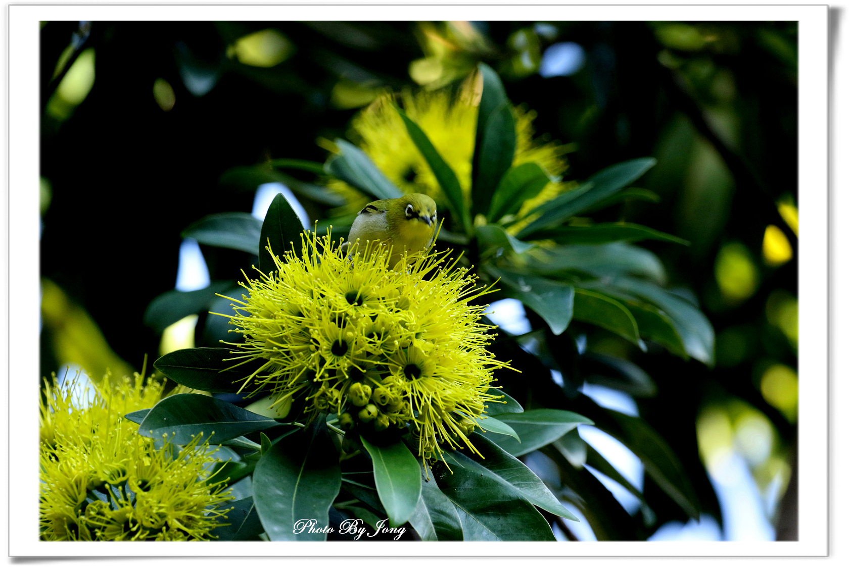 蒲桃果子又叫香果;落果松鼠來食(士林官邸、台大校園)。黃金蒲桃花團錦簇+綠繡眼+黃腳虎頭蜂(士林官邸)。