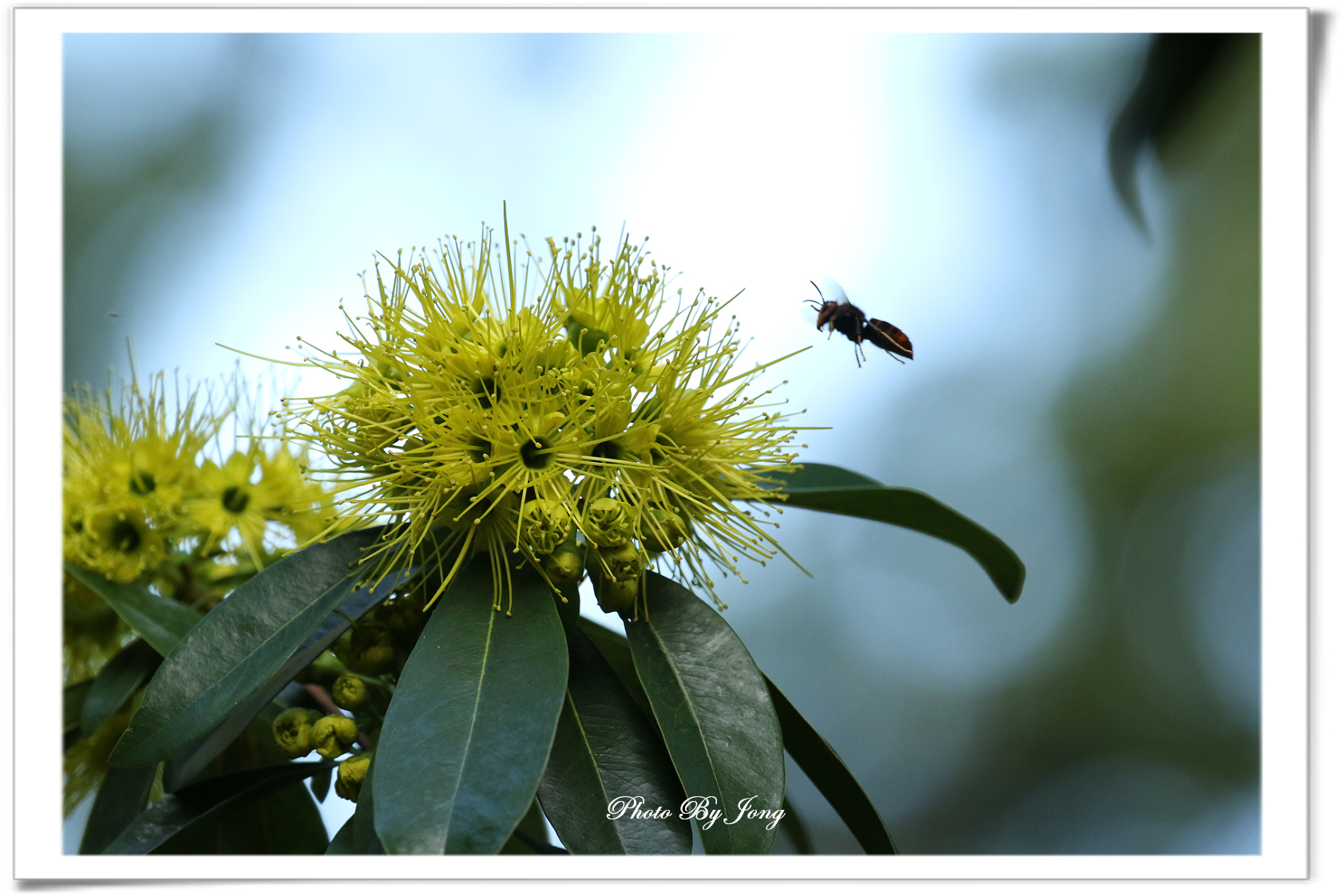 蒲桃花+西洋蜂+紫單帶蛺帶+斯氏紫斑蝶+紅擬豹斑蝶。(植物園、士林官邸)
