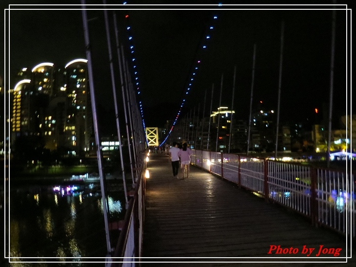 橋懸燈彩跨兩岸,波光映照樂星空。