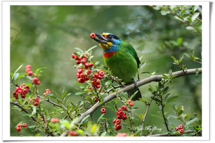 原本應在秋紅的狀元紅果,入冬也難得留有紅透的果子,無論是中正紀念堂、植物園,亦或是華江雁鴨公園,好多處皆發現有鳥愛食其果。先後累積拍到的有留鳥五色鳥、鵲鴝、白頭翁、輝椋鳥、黑領椋鳥、家八哥、麻雀等,因入冬季節,還有候鳥白腹鶇、赤腹鶇、黃尾鴝、極北柳鶯及藪鳥等鳥來食,也讓鳥友們樂得聞鳥訊搶鏡。據了解,中部及東部地區,狀元紅果熟時,也吸引頗多雀鳥訪食,真是賞心悅目的風景啊!