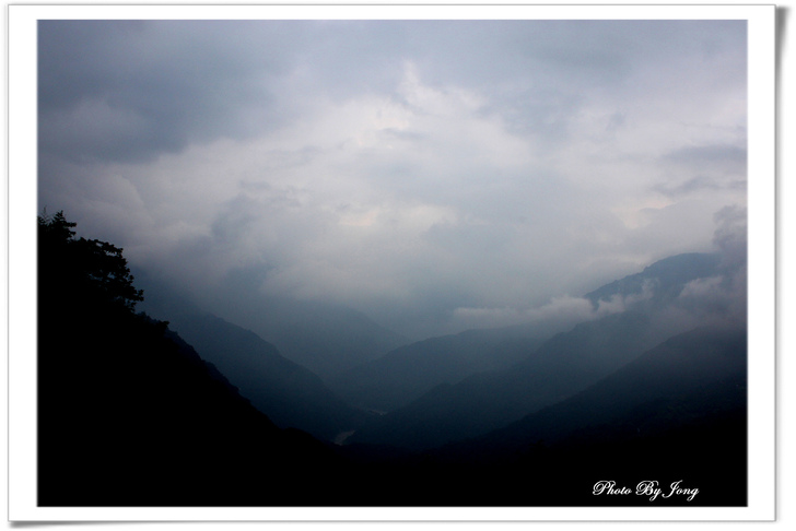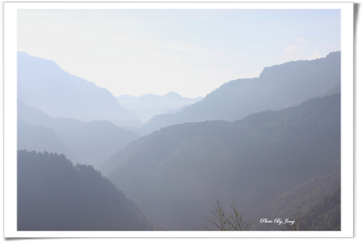 拉拉山遇驟雨,幸半個多鐘頭後雨勢變小,才未擔誤走訪巨木林行程,山林確實霧濛濛;嘎拉賀住宿即在山中,出門即可見青山溪谷、白雲、煙雨及霧氣繚繞,才近身感受人在山中,山在虛無縹渺中的情景。