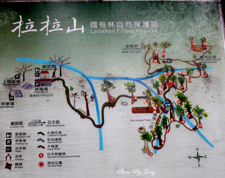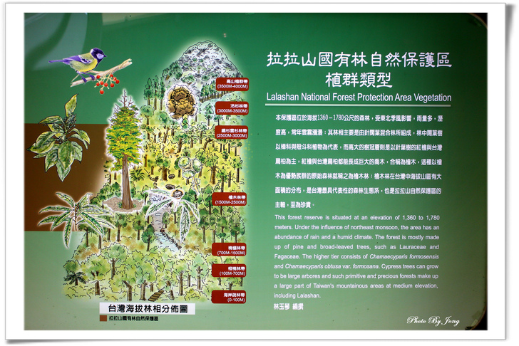 衷心期盼一睹巨木林的丰采。不巧的是,車剛到拉拉山風景區,山上的天氣可是說變就變!竟忽然下起滂沱大雨來。大家只好到拉拉山生態教育館內參觀避雨。