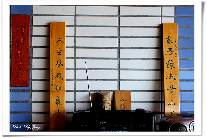 套用山居學長擺飾的對聯:家居綠水青山畔/人在春風和氣中。