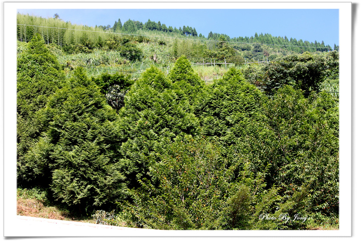 閒閒在山徑間漫步,可以看到<農場>主人栽種了一整排不同品種的櫻花、槭樹(楓),還有香椿等高山植物,可惜現在不是楓紅及開花期,否則,應更添山景的風光吧!