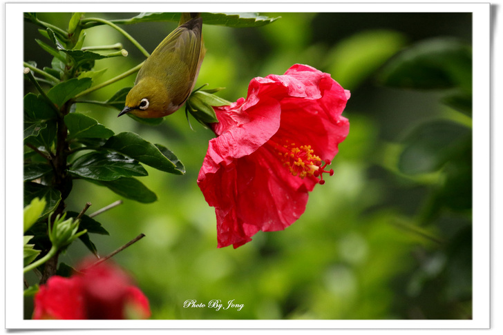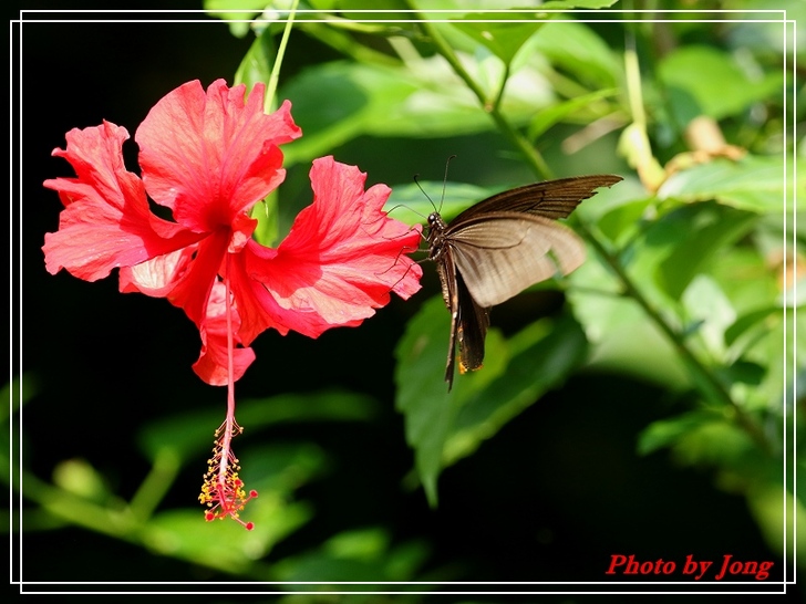 賞花之餘,更樂在抓住扶桑(朱槿)花與蜂、蝶、鳥邂逅的機遇,留下美好的生態記錄。