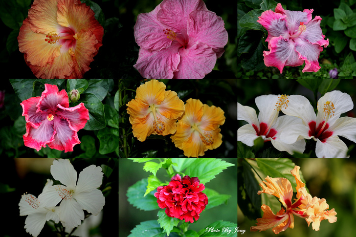 扶桑花有單瓣、複瓣更多的品種,花大而艷,花色繁多,十分可觀。