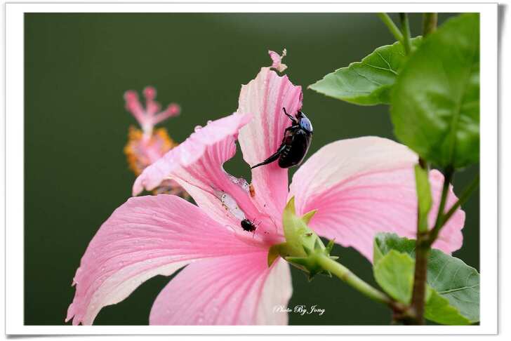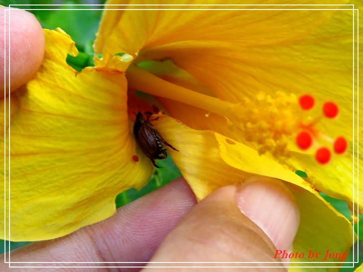 扶桑(朱槿)花+台灣琉璃豆金龜、葉蚤+台灣豆金龜+黃胸圓葉蚤。