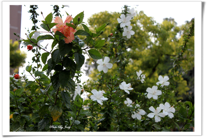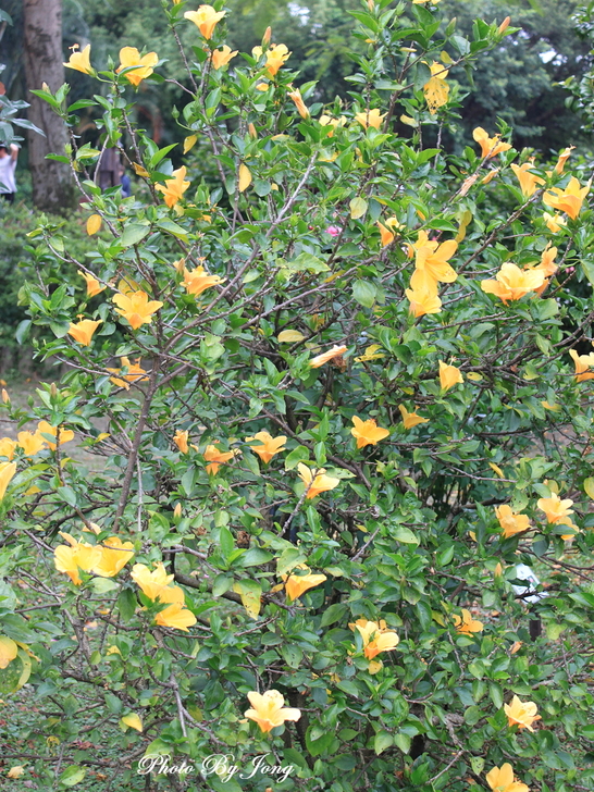 早年,去士林官邸賞花,在園區中山北路入口行道兩邊栽著亞歷山大椰林林道旁的灌木叢,可見栽植的扶桑圍籬,就備感親切;現今,常去走走的台北植物園、中正紀念堂、榮星花園、新生公園園區及台北玫瑰園兼雜在各種玫瑰之間,扶桑花似乎四季都不缺席,且有單瓣、複瓣更多的品種,花大而艷,花色繁多,十分可觀,且總是讓人驚艷。