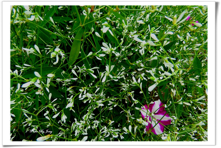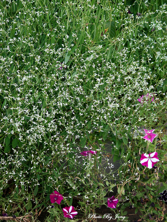 日本一個網誌形容:「雪花草的花量多,鋪天蓋地的散開,有朦朧柔和之美!」,讓我聯想曾有人將白居易的詩<花非花>:「花非花,霧非霧,夜半來,天明去,來如春夢無多時,去似朝雲無覓處」,指為夜半降的「霜」。雪花草的朦朧美,應該就是英文名DiamondFrost(鑽石冰霜)的由來了吧。