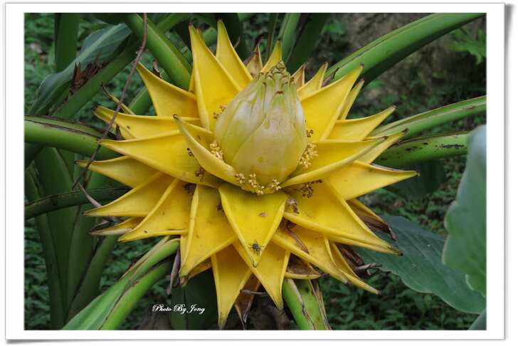 經查文獻,苞片:在植物學中,苞片指一種特化的葉,通常位在生殖構造如花、花序軸或毬果的鱗片附近。苞片的外觀通常在大小、顏色、形狀或質地上和營養葉有所不同,也常和花的花萼或花瓣不同。苞片醒目供觀賞的植物很多,常見的有:海芋(馬蹄蓮)、白鶴芋、火鶴(白掌、紅掌類)、九重葛(三角梅)、紅黃蝦花、芭蕉科紫夢幻蕉、地湧金蓮等。