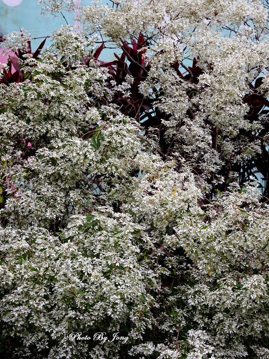 台北夏去秋來入冬,天氣雖微微轉涼,那有大片雪花可賞?何妨栽一大叢白雪木或雪花草造景,在朦朧的氛圍中,多少也可以想像霜花紛飛的美感和浪漫吧。