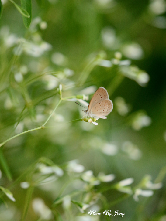幾個月前,在台北花博新生公園,看到一種像是滿天星的植物,但不是一般已熟知的石竹科的滿天星。開的雖也是眾多的小白花,花距卻不密集,說是稀稀落落,卻又是群聚的猶如一束「滿天星」。偶爾,還會吸引沖繩小灰蝶(藍灰蝶)、折列藍灰蝶來訪花。