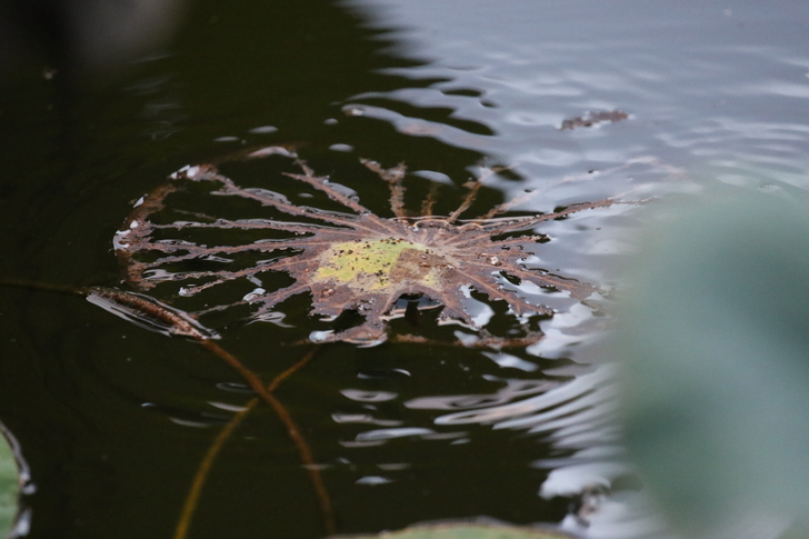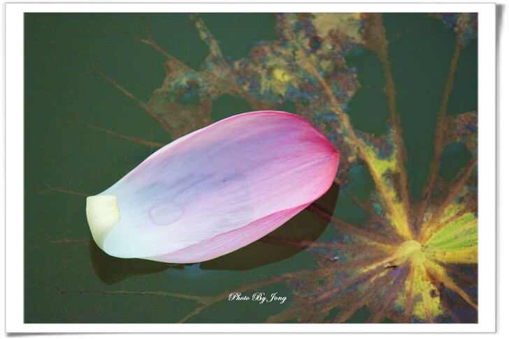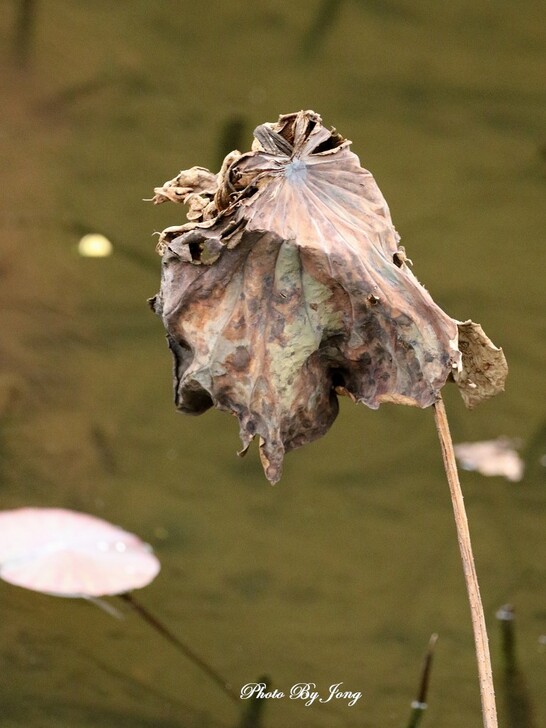 荷殘葉枯影斑剝。花謝落瓣獨飄零。