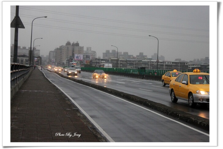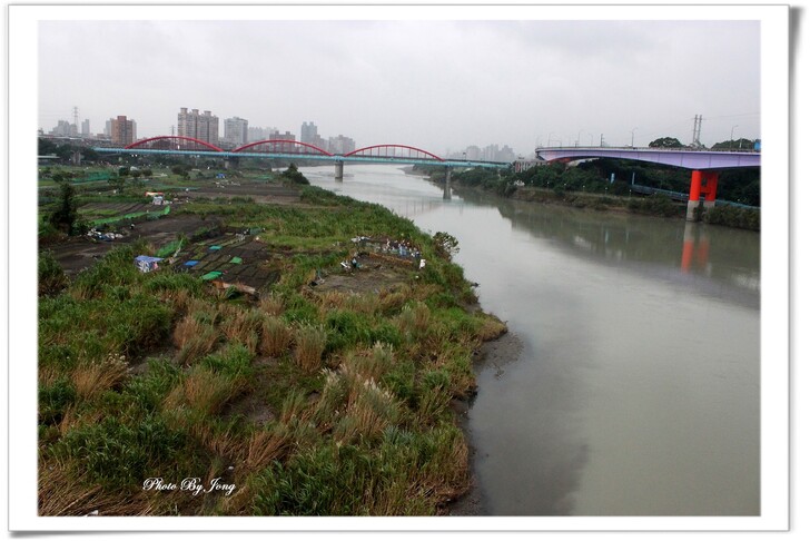 穿戴著雨具走上福和橋,永和在那頭,公館在這頭。行至橋中回望,直行基隆路、左轉汀州路,或左轉羅斯福路往公館,右轉往景美、新店,除了原本平面的道路,如今都已經新建了立體的高架橋連接,過去在十字路口交通打結的狀況,應該可以減緩許多了吧!而同樣距福和橋不遠的河岸上,跨福和路到台大那兒,也早已建起了永福橋,給永和及台北市的連接又多了一個方便;這就是都市的樣貌,總是不斷的在演變!時移境遷、物換星移,而歲月的遞嬗、世代的交替又何嘗不是呢?真要警醒自己把握當下和珍惜及時啊!