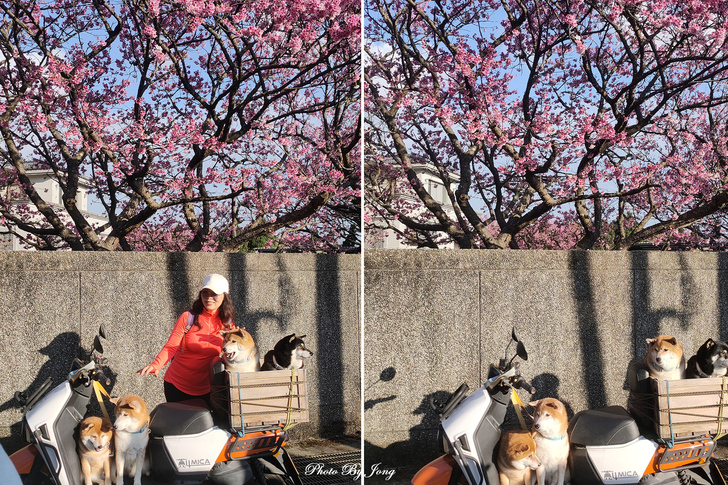 上週五,為了不錯過新聞報導的平等里平菁街42巷的櫻花,也捉個空專程去探個究竟。或許時間有點遲,平菁街田園的山櫻花已長出了綠葉,幸好寒櫻仍在盛開期,賞花人依然絡繹於途,還有人帶了秋田犬當麻豆,讓賞花客紛搶著合照;惟因前幾年新冠疫情影響,店家難免物換星移。