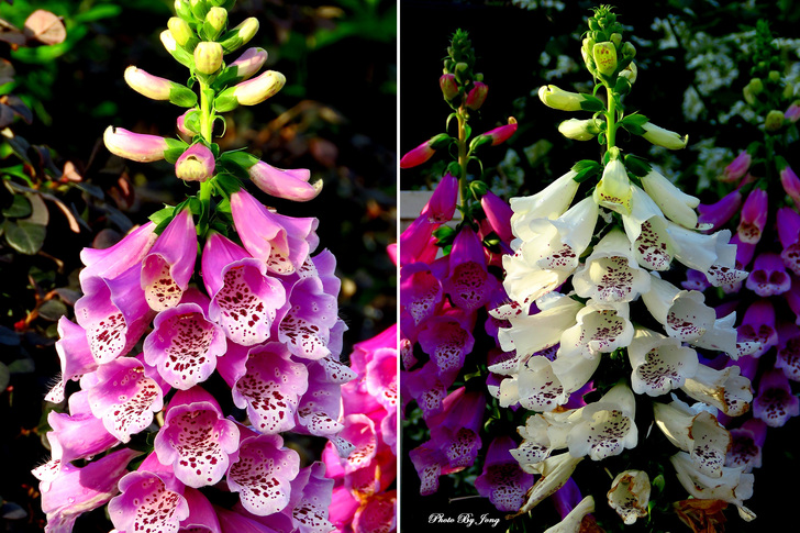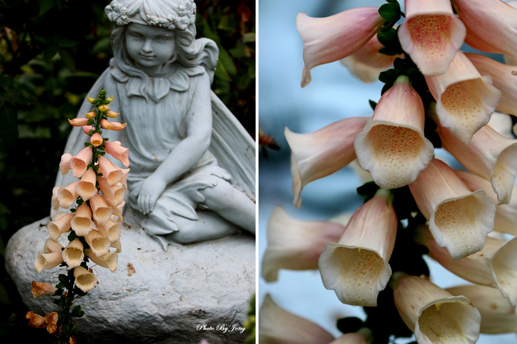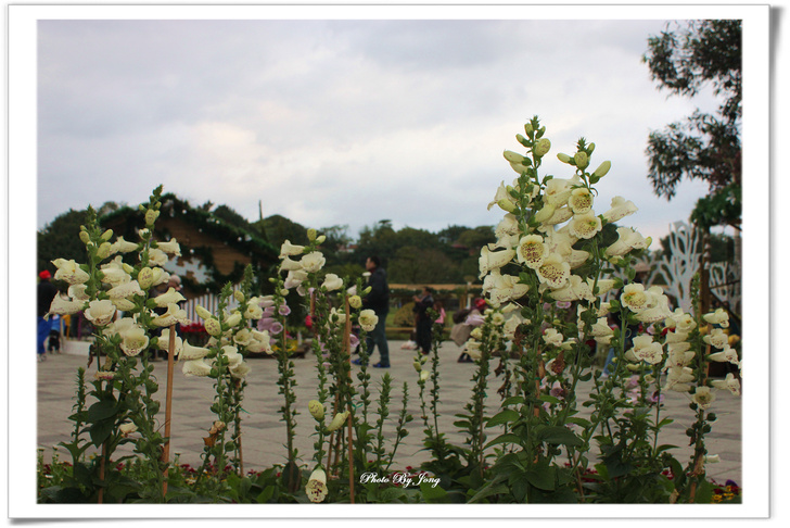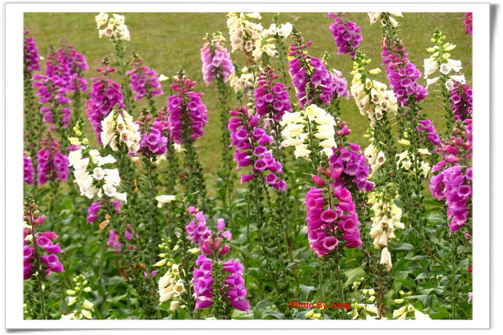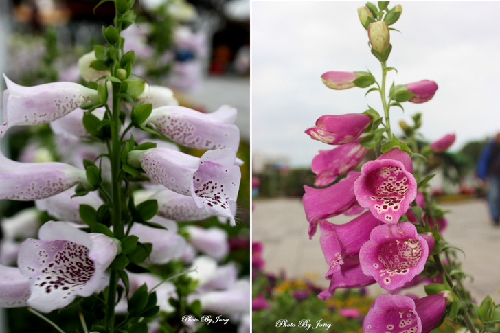 據了解,毛地黃花期本預定在 6~8 月,但經園藝業者在溫室進行促成栽培,應節慶時推出;也無怪多次在冬季迎春的多項展覽期間,都會看到它開得正盛的嬌容。葉或有劇毒,但花姿美麗引人,藏在花筒深處的花蕊,對蜂、蝶也是十分具有吸引力!因此,不只遊客在花叢間穿梭擺Pose留影,蜂、蝶也在花間飛舞尋找花粉和花蜜,或是捉對成雙的機會呢!