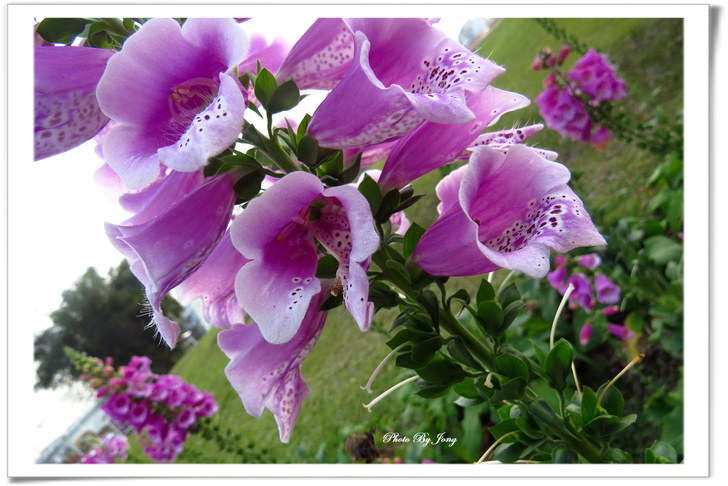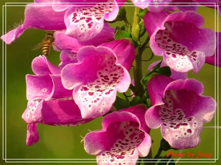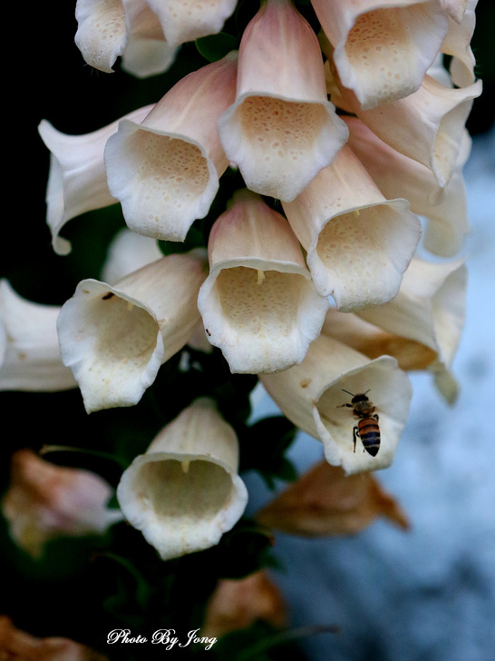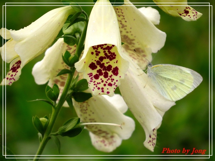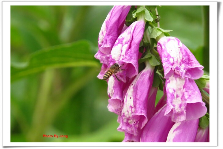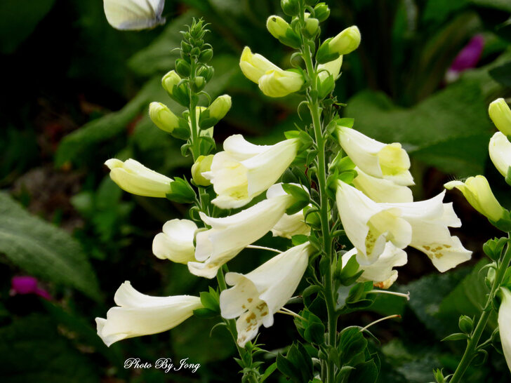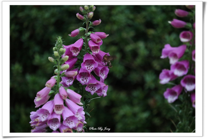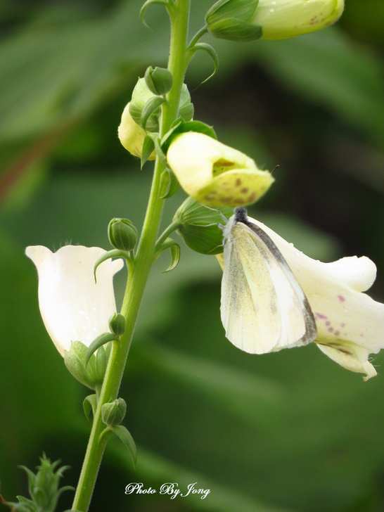 毛地黃花形像支支的小喇叭。受蜂蝶青睞。西洋蜂+白粉蝶。