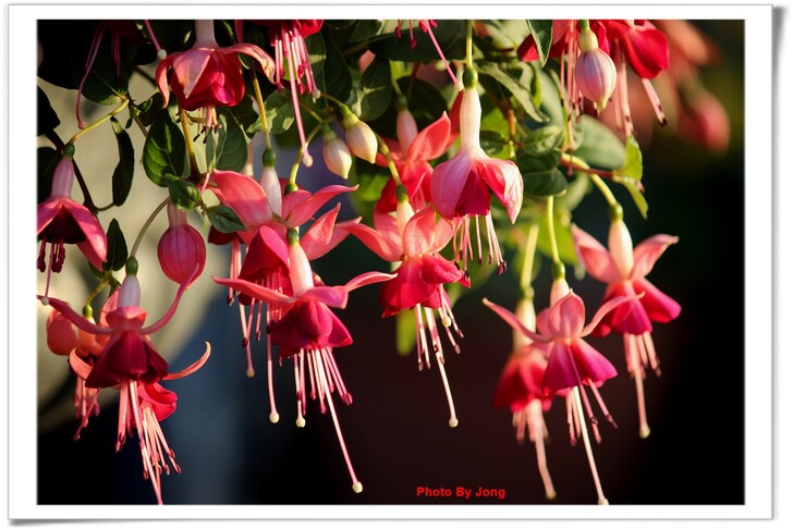 不過,另有柳葉菜科(Onagraceae)倒掛金鐘屬(Fuchsia)以形像為名的吊鐘花,別名:金鐘花,燈籠花、吊燈花、浮鉤草、燈籠海棠,倒掛金鐘,燈籠花(昆明),吊鐘海棠(浙江、江西)。似乎先聲奪人搶了采頭,此鐘非彼鐘,在我們欣賞毛地黃(也名吊鐘花)時,或可以相互對照,何者更「名副其實」呢?