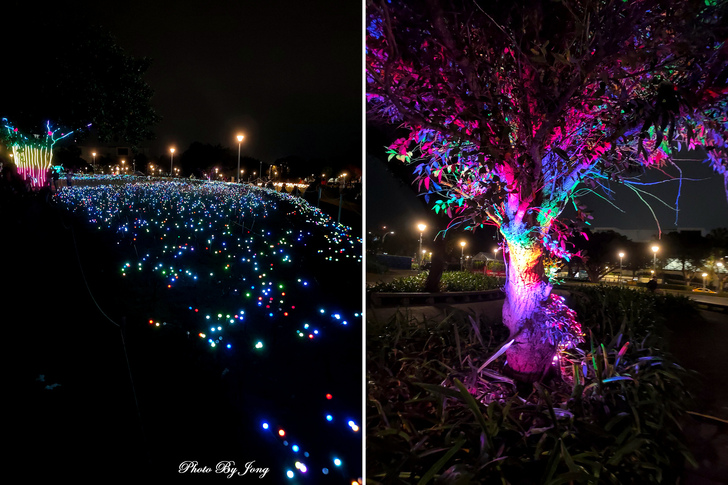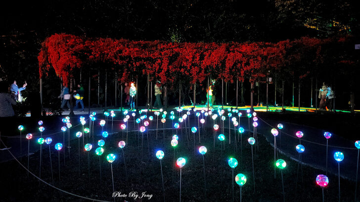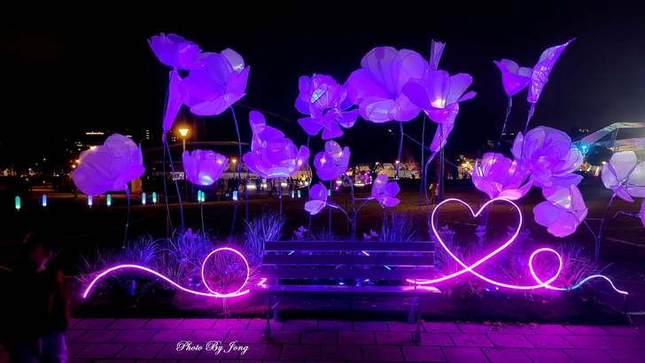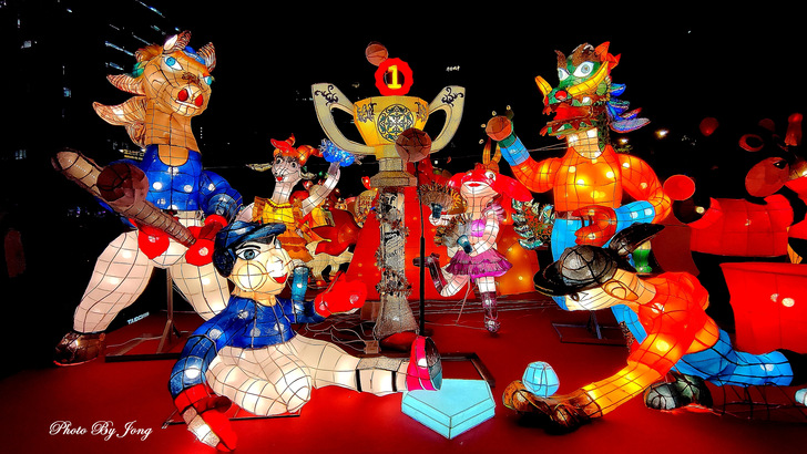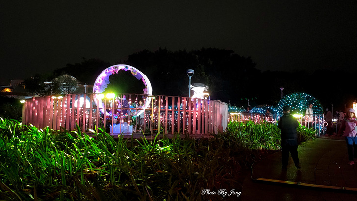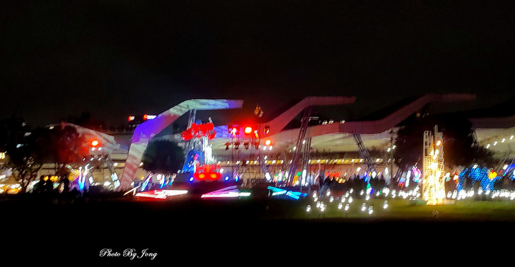 圓山花博園區,圓區內就有臨濟護國禪寺、景福宮,過去多年與隔中山北路對面的美術館園區連結舉辦多屆燈會,可惜,美術館近年除本館外,園區大部份因「跨域‧鏈結‧未來」新建工程,已多年在圍籬施工中。但圓山公園相連圓山自然景觀公園,地處幽靜,原就是台北人假日喜歡輕鬆徜徉的空間;夜晚,搭上花燈襯托,平添休閒風味。