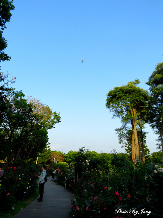 四,育種家花園:特別種植台灣許古意先生、英國大衛奧斯丁先生及日本木村卓功先生三位育種家辛苦育種的成果。(這一區特別標榜因園區位於松機航道,賞玫瑰附帶可以拍攝飛機凌空而過的美景)。