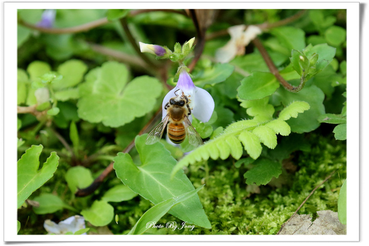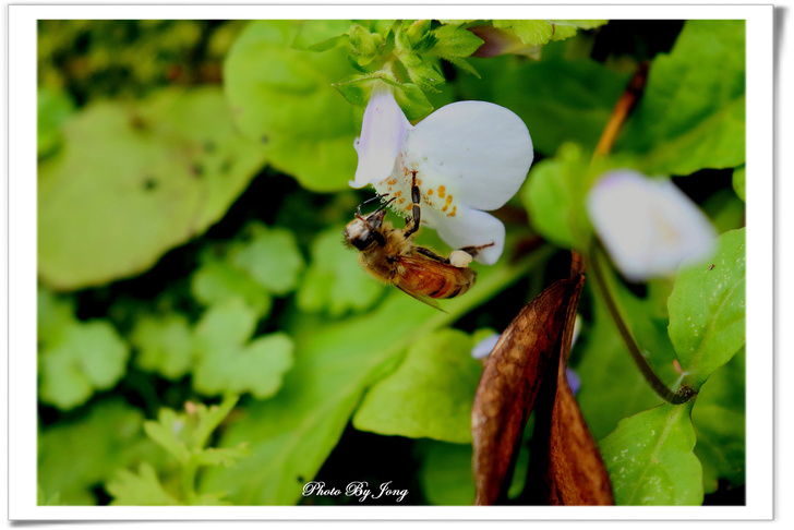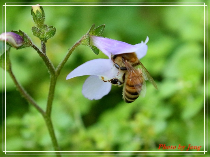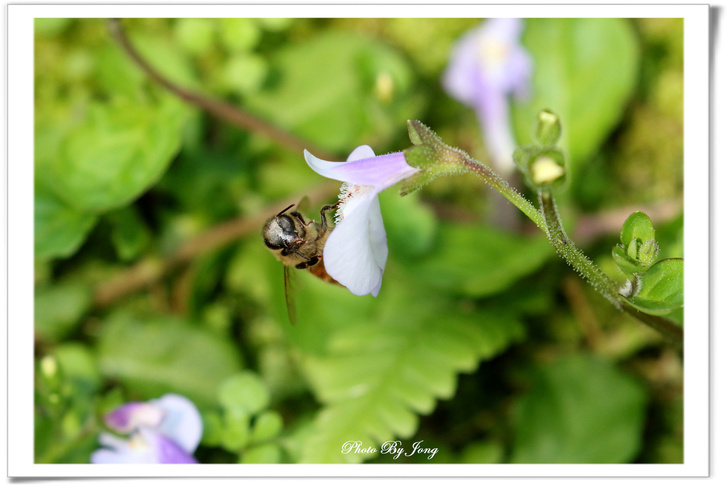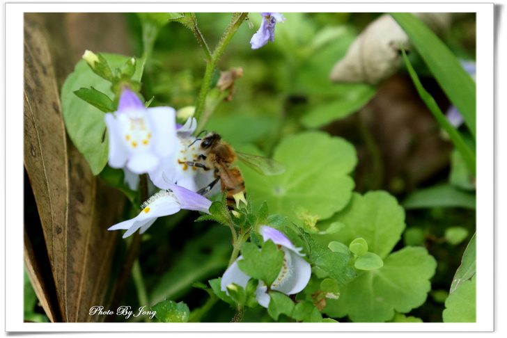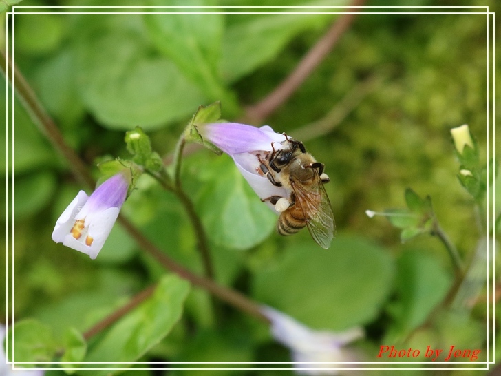 通泉草花冠分為二唇狀,上唇短直,二裂,裂片尖形,下唇三裂+西洋蜂。
