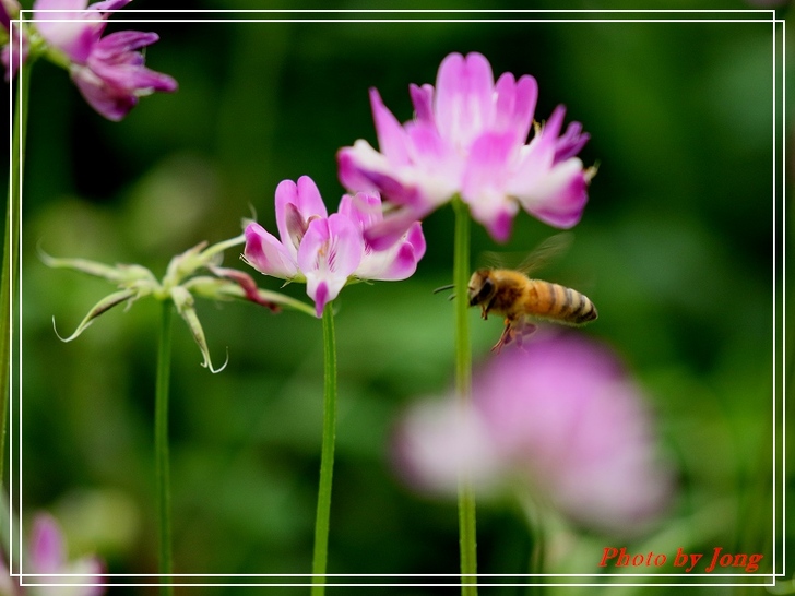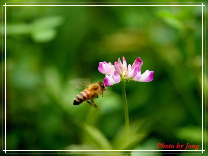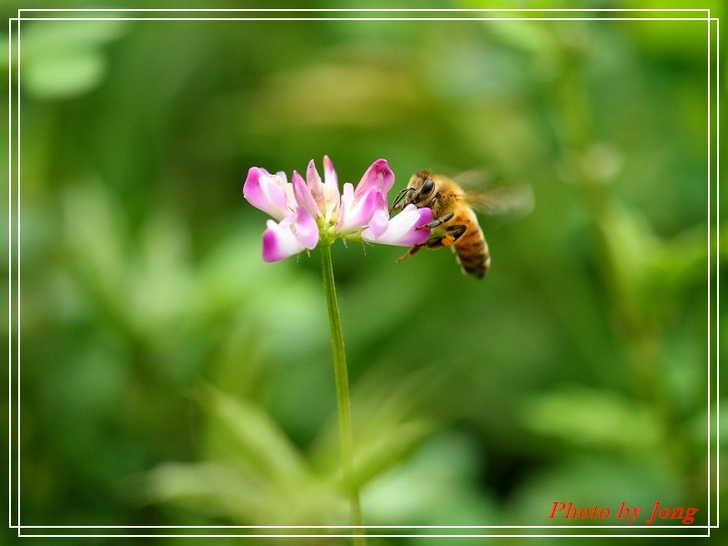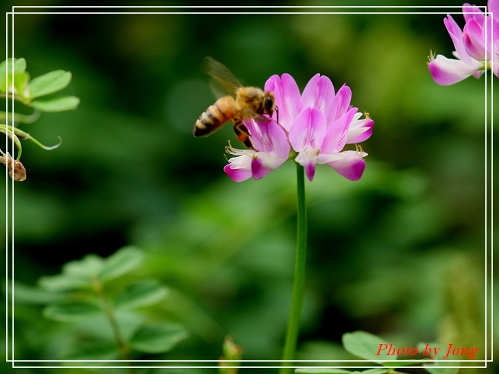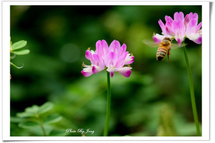 紫雲英花冠紫紅色或橙黃色,旗瓣倒卵形,翼瓣較旗瓣短,龍骨瓣與旗瓣近等長+西洋蜂。