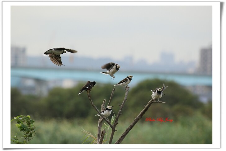 朔風野大,雁鳥稀少;意外的,卻發現一群黑領椋鳥、八哥鳥及環頸鴴在河川中的一堆雜樹叢暫憩;失之東隅,收之桑榆,正巧目睹記錄到黑領椋鳥一場空中的飛翔與滑翔降落實況,也算是賞鳥的另一種機遇。 朔風野大,意外...