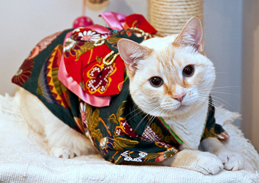 一雙深藍色的眼睛與身上的和服互相輝映。