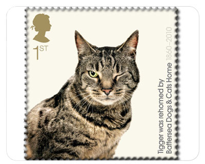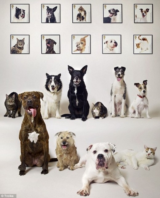 為了慶祝倫敦著名的“巴特西貓狗之家”成立150周年,人們特地召集了在這裏生活過的10只貓狗,以它們為模特制成了一套一流的寵物郵票。