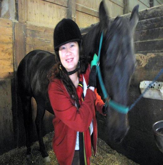 Norman是一匹高大英俊的黑馬,目測高度應該有17 HH (Hands High) ,加上五呎九吋的我,用「人高馬大」來形容我們的組合,真是再貼切不過了。