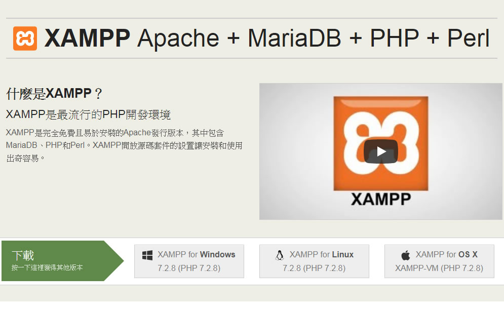 6. 下載 xampp-portable-win32-7.2.8-0-VC15.zip (這裡的檔案名稱,依你下載的版本而定)