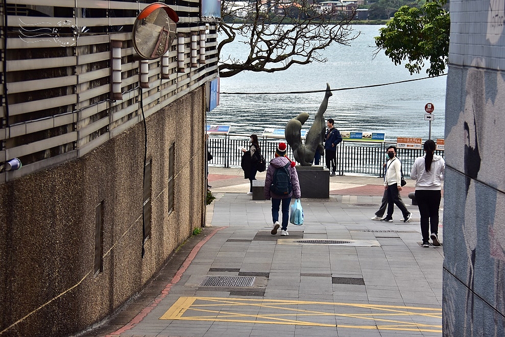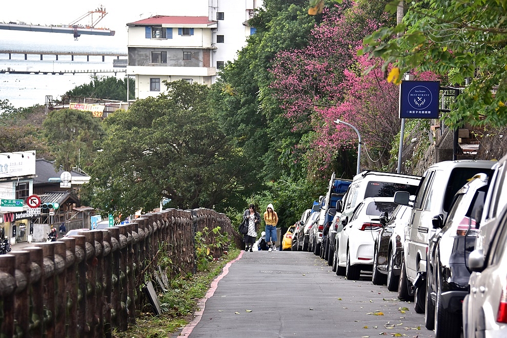 ↓過行人天橋,從馬偕街走到淡水河岸。