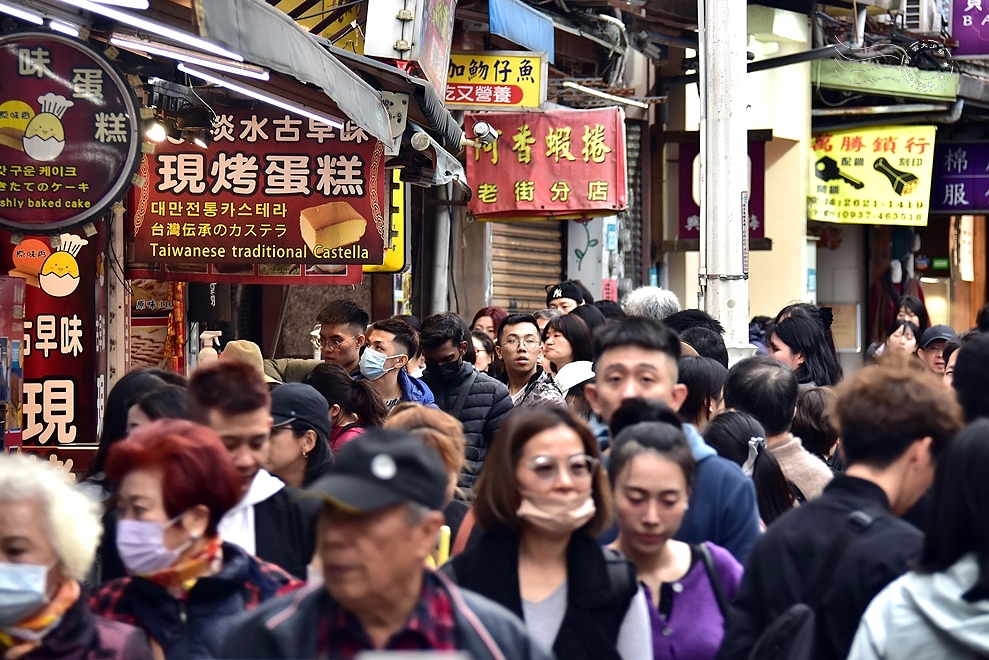 ↓即便沒有夕陽秀,週休二日前的人潮依舊湧入老街。
