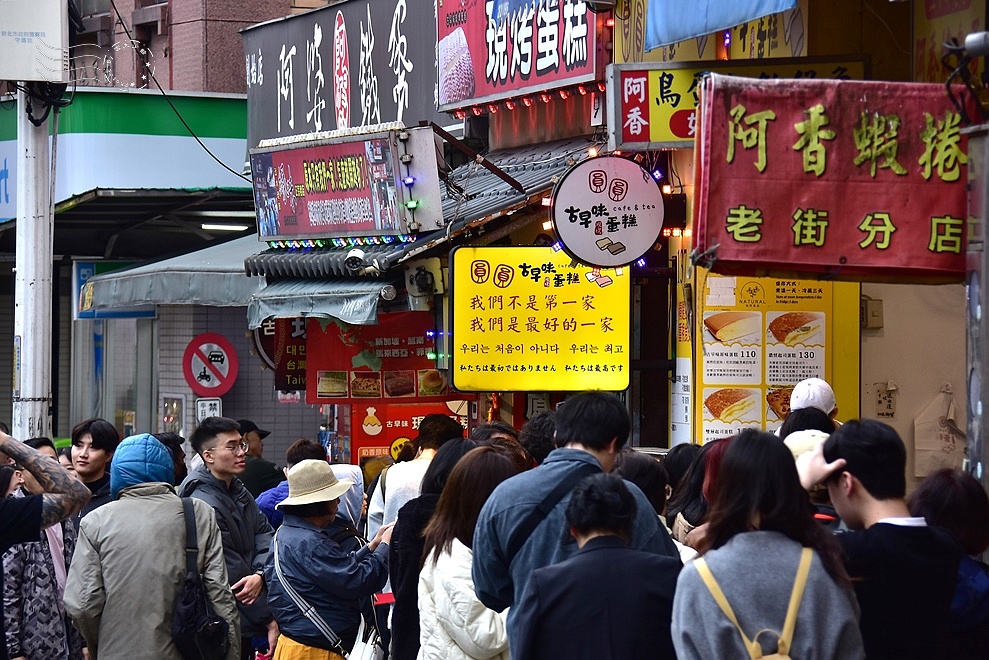 ↓小巷出來,三攤古早味現烤蛋糕這邊,小週末果然出現了排隊人潮。