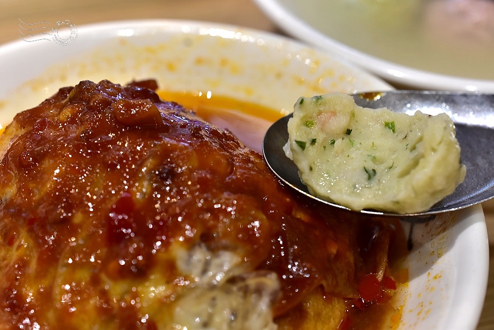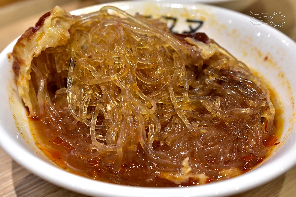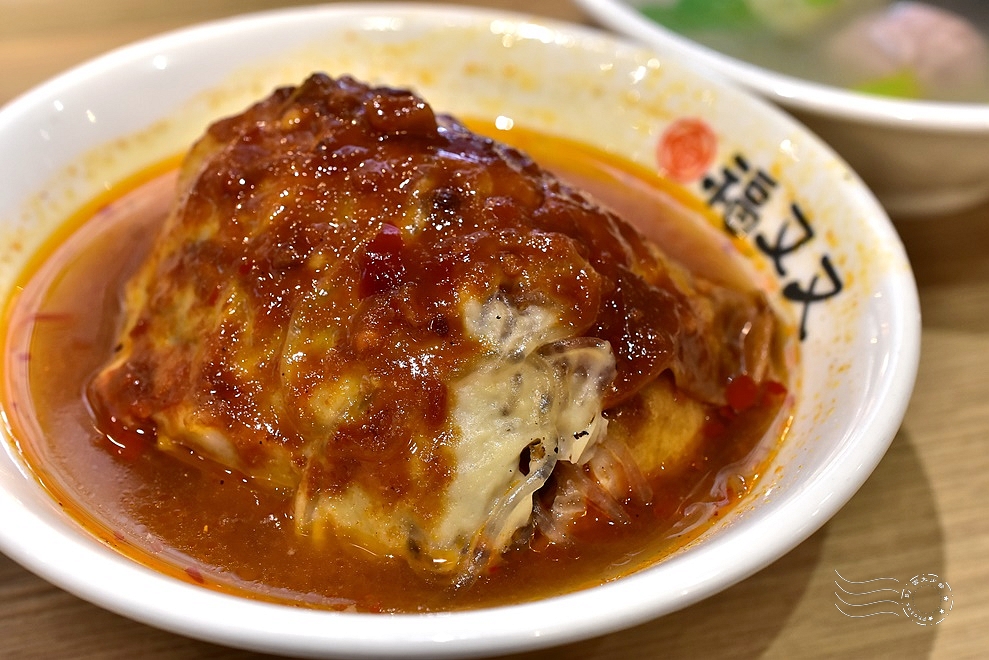 ↓阿給的油豆腐皮沒用魚漿封好,筷子輕輕一挑就掀開了。好在裡頭的粉絲還算有彈性,不至於軟爛。不過,油豆腐皮的口感略嫌鬆散,魚漿的存在感也不強。甜辣醬汁偏稀,雖然我已經點了全辣,但嚐起來也只是微辣而已。對我這種挑剔的老淡水人來說,這個份量不算大的阿給,吃起來反倒更像是其他觀光景點會出現的版本。
