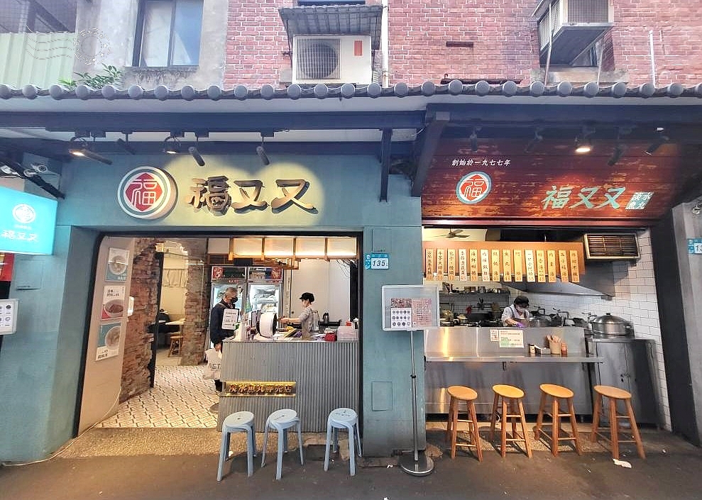 ↓渡船頭正前方的小巷裡,發現一家【福又又淡水魚丸】,招牌上寫著創始於 1977 年,算一算,已超過 47 年歷史了。印象中過去在中正路 135-3 號這個渡船頭門口,並沒有見過這間店,想必是早年在別處起家,近年才遷來此地,重新打造出一個復古又帶著文青風的店面。那就在這邊完成今天想吃阿給的任務吧!