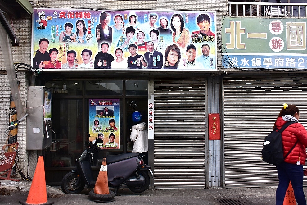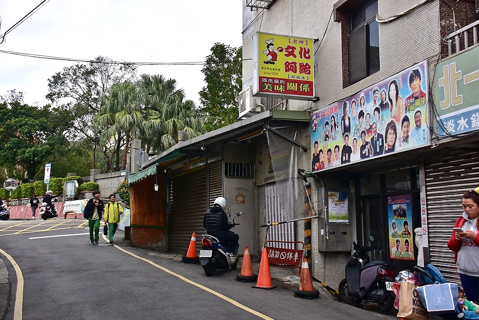 文化阿給在文化國小左近,如果從捷運站一往情深地走過來,大約十來分鐘。搭公車的話,站牌是「淡水圖書館」,下車後走階梯上駁坎。