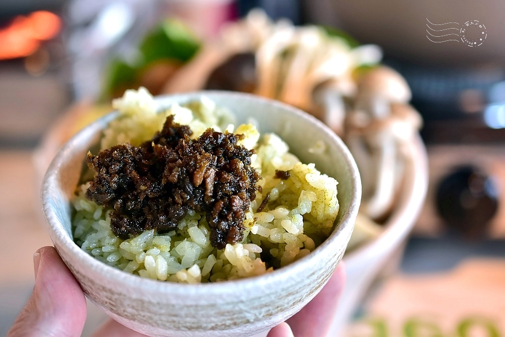 ↓辣木飯呈現淡淡的草綠色,吃起來也是淡淡的,我曾經喝了好一陣子的辣木茶,很喜歡這種草本氣息。老闆熱情推薦現場販售的「辣木香椿醬」,特地讓每位客人試加在飯上,增添另一層鹹香的風味。